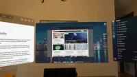 In either case, though, you’re usually just getting the ability to put windows around you. For example, I started out by sitting at my kitchen table and putting my writing app in front of me, Slack and my email app off to the side, and a browser window with a YouTube video playing on the other side. This felt a bit like using several large computer monitors, each with an app maximized. It’s cool, and the ability to shift between your real environment and fully immersive virtual ones can help with focus, especially if you do intensive creative work like writing.