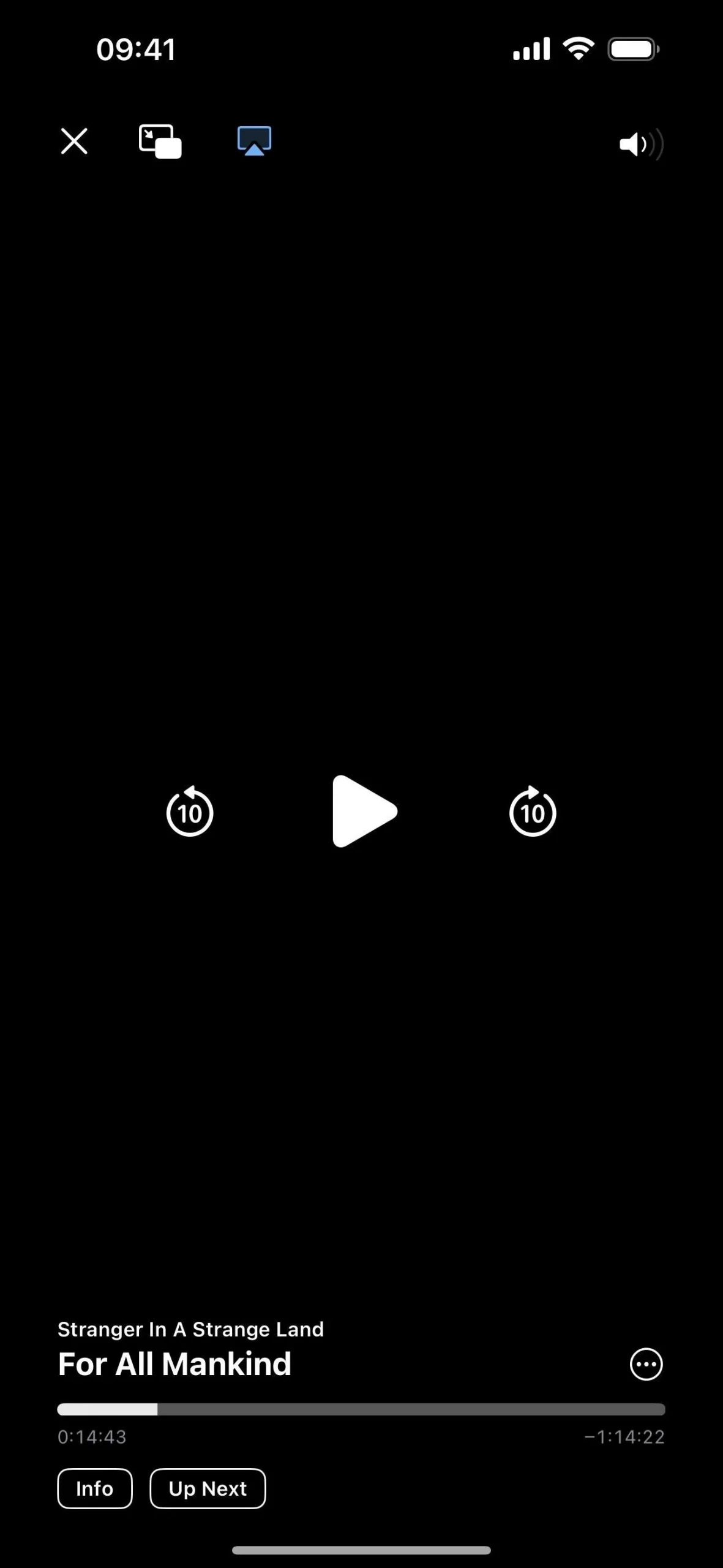 When playing a video, tap the screen to show the playback controls, and you’ll see new links below the timeline bar for “Info”and “Up Next.”