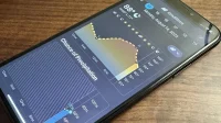Tap the tile to open a new modal view with a timeline for the moon that you can scrub through to change the metrics at two-hour intervals for the current, previous, and next month. The image of the moon animates to show its phases, and the data points for illumination, moonset, moonrise, next full moon, and the distance from the current location also change along the timeline.